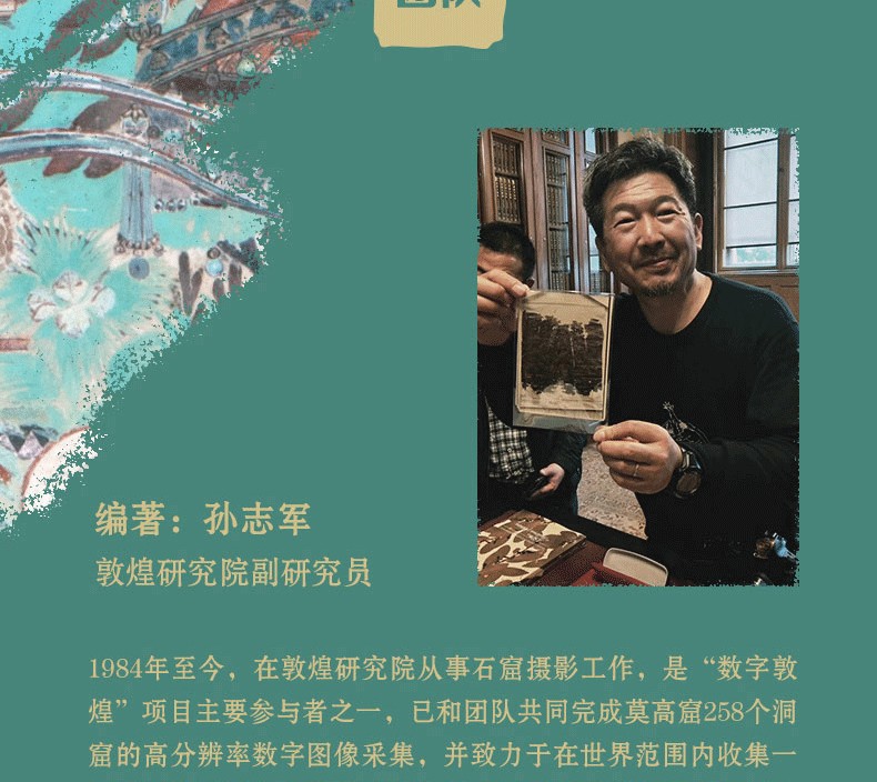 孫志軍,敦煌研究院網絡中心主任,副研究員,中國文物學會文物攝影委員會理事。 1984年至今在敦煌研究院從事石窟攝影和數字敦煌項目。
