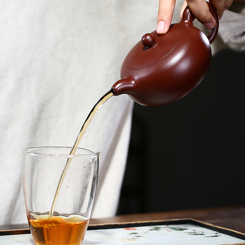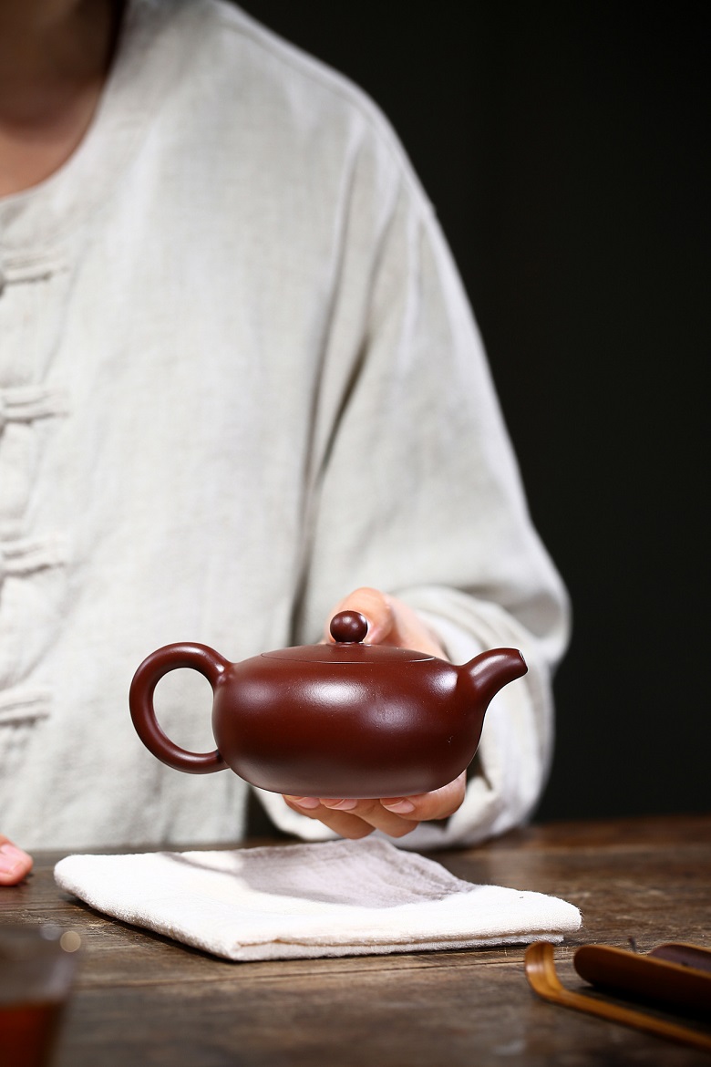 原礦紫朱泥扁西施紫砂壺