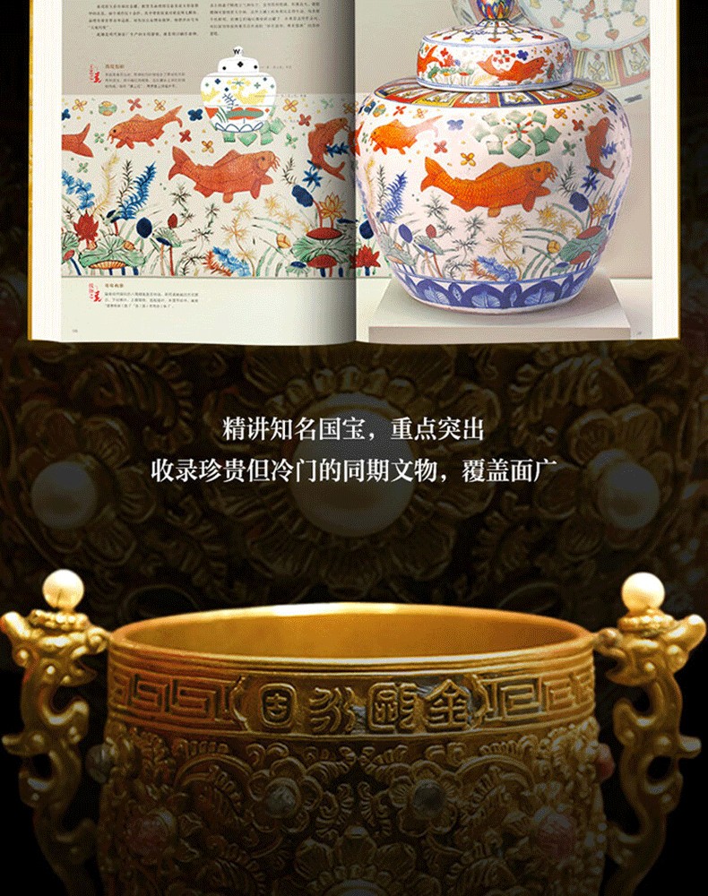 本書以大幅精美彩圖為特色。每一件國寶都以高清晰度的照片展示,捕捉了其細節和精湛工藝。無論是玉器、陶瓷器、青銅器還是書法繪畫,每個國寶都以其獨特的藝術風格和精美的工藝令人驚嘆。這些彩圖不僅展現了國寶的美麗外觀,也突顯了其精細的紋飾和考究的細節,使讀者彷彿親臨國寶的身邊,沉浸在其絕美的藝術之中。