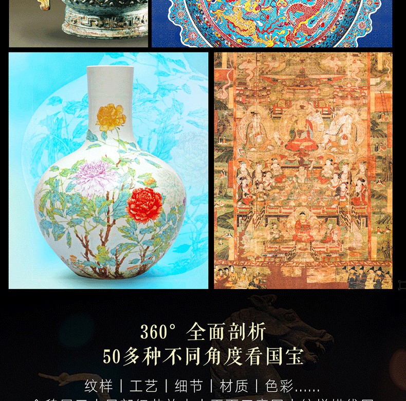 1.精美彩圖與專業解說的結合:本書以高清晰度的彩圖展示中國經典國寶,捕捉了其細節和精湛工藝。每個國寶都配有詳細的解說,涵蓋了歷史背景、文化意義、藝術特色等方面的內容。這種精美彩圖與專業解說的結合,使讀者能夠了解國寶的外觀和內涵,深入欣賞其美麗和獨特之處。