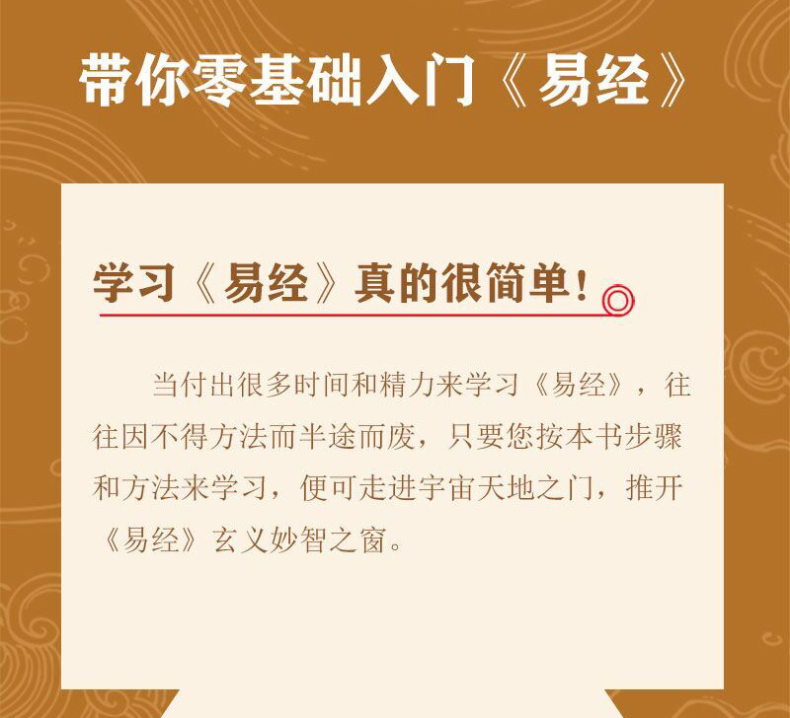 《易經》是中國古代最早涵蓋天、地、人三界的哲學著作,是華夏文明的源頭,被奉為經典中的經典,哲學中的哲學,智慧中的智慧。 幾千年來,無數人被《易經》的魅力所折服,研究它的著作多達數千種,形成了人類文化歷史上獨一無二的學術奇觀。 老子、孔子、董仲舒、司馬遷、鄭玄、阮籍、王弼、陸德明、孫思邈、孔穎達、蘇遼、歐陽修、程頤、朱熹、王陽明、王夫之等都是著名的易學大師。 不只在中國,在國外,《易經》的影響也是深遠的。 日本漢學家本田成之說:「《易經》乃是中國人一切智慧的基礎,是唯物主義及其規律的基礎。」歐洲哲學家捷思說:「談到人類智慧寶典,首推中國 《易經》。」德國哲學家黑格爾甚至在自傳中承認他所創造的正反合辯證邏輯定律,正是得於《易經》的啟發。 這是一部在尊重原著的基礎上,結合歷代學者的易學研究成果,用現代的視角,綜合圖片、專題等多種要素對《易經》進行了全新演繹的經典智慧讀本。