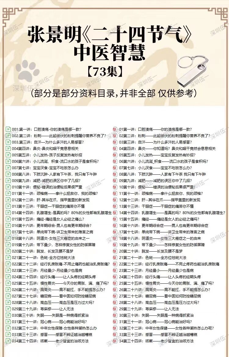 張宸菘道醫九十九項影片教學64G(U盤發貨 無需下載 即插即看 手機電腦都能看)開關療法+疑難雜技課全程班影片教程