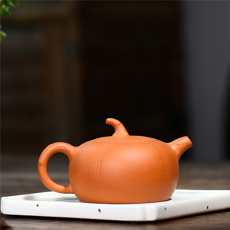 大紅袍南瓜瓣壺原礦紫砂仿古筋紋合菱壺