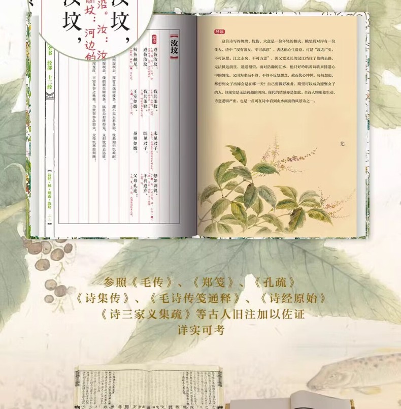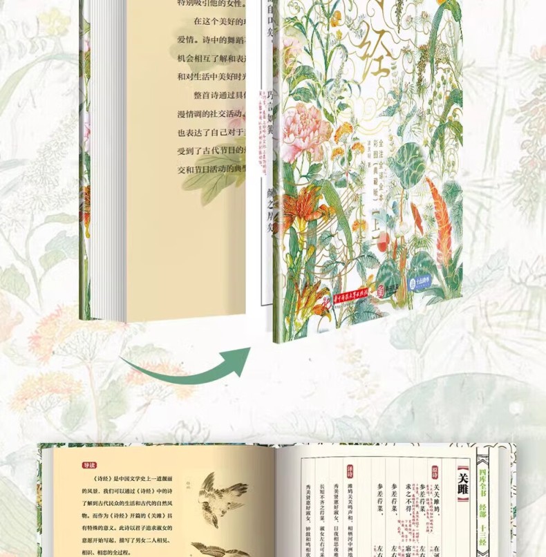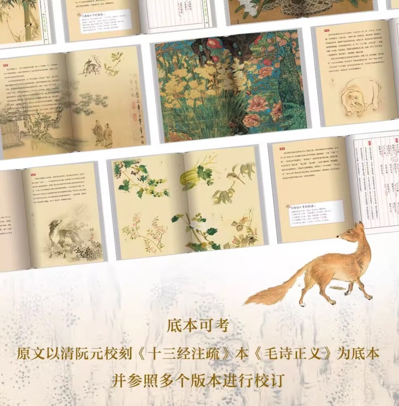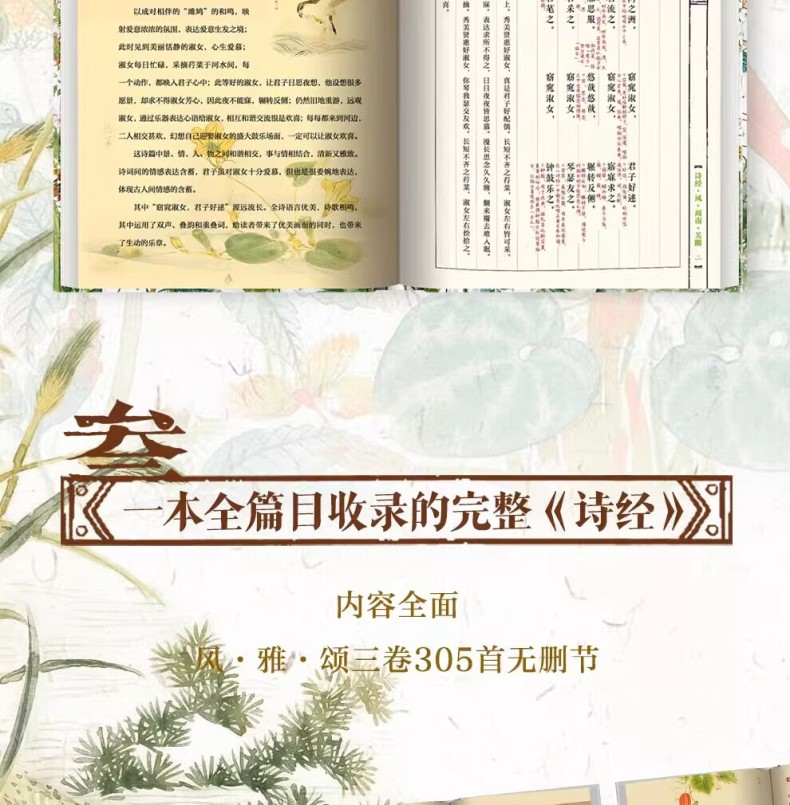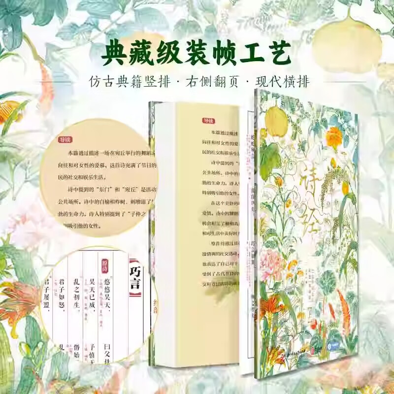 本書包括上、下兩冊。本次出版的《詩經》既是文學巨著,也是藝術畫冊。本書特別收錄了馬和之、乾隆版等多個經典版本的詩經插圖,他們以獨特的藝術視角,生動再現了詩歌中的經典場景。並且收錄了原著的全部內容,更邀請了權威專家對每一篇詩歌進行詳盡的導讀、註釋和解讀,深入剖析詩歌背後的歷史文化內涵。我們這部全新版本的《詩經》,將帶領讀者領略中華文化的博大精深,感受古代詩歌、繪畫的無窮魅力。無論是文學、藝術愛好者、研究者,或是對中國傳統文化有興趣的讀者,都能從中獲得深刻的啟示和美的享受。