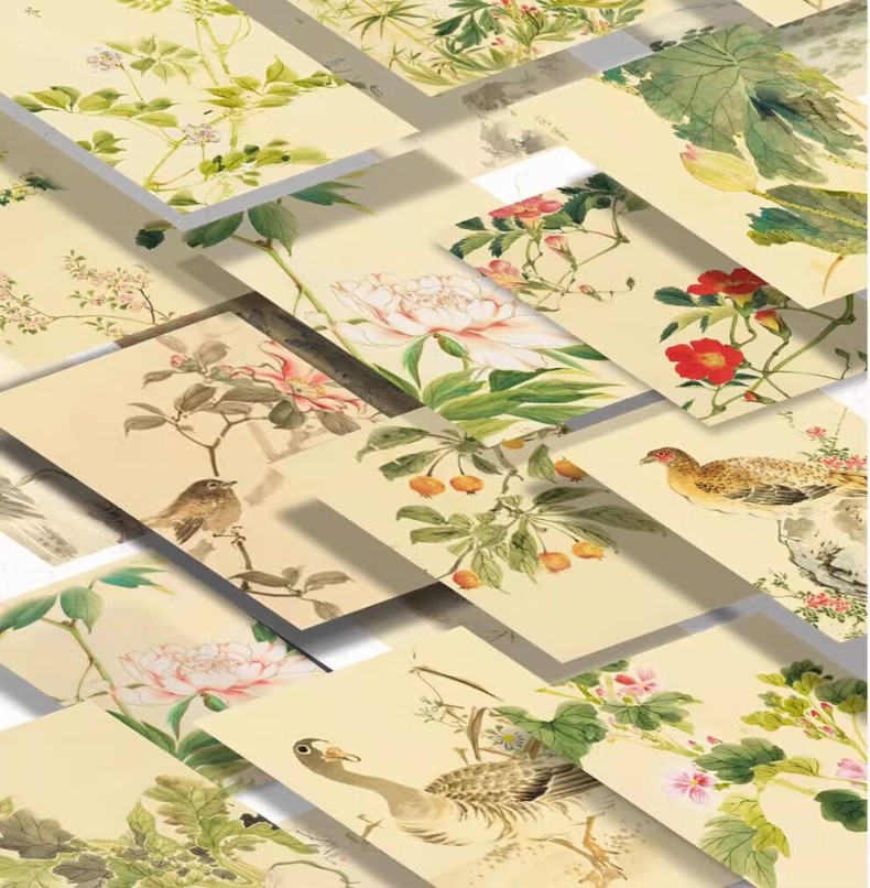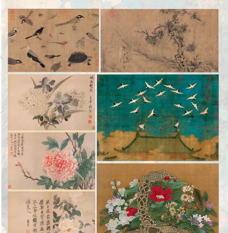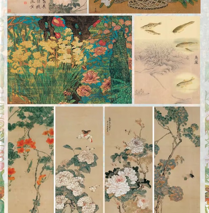 【湖州真絲宋錦函套】芥子園畫傳:翎毛草蟲花卉譜一函3卷 宣紙全彩原色高清印製 附收藏證書