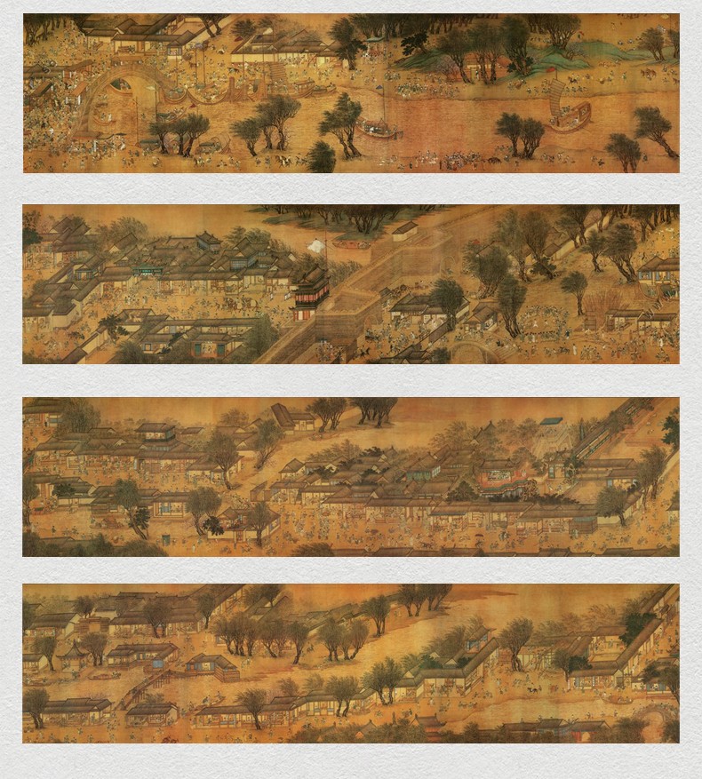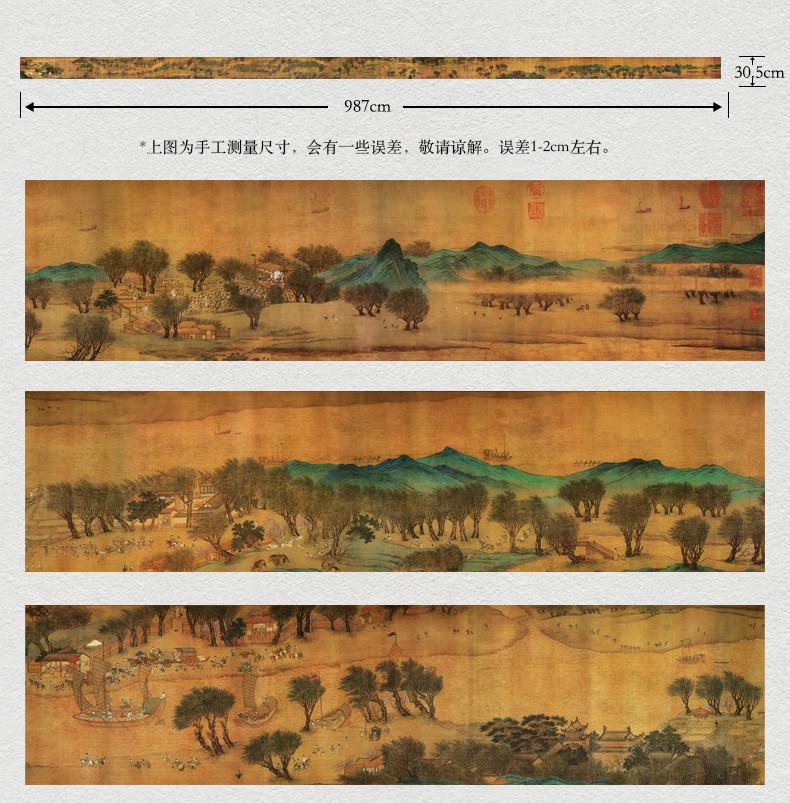 《清明上河圖全景高清絹絲版》 宋 張擇端 畫心絹絲 布藝裝裱 210cm*23cm