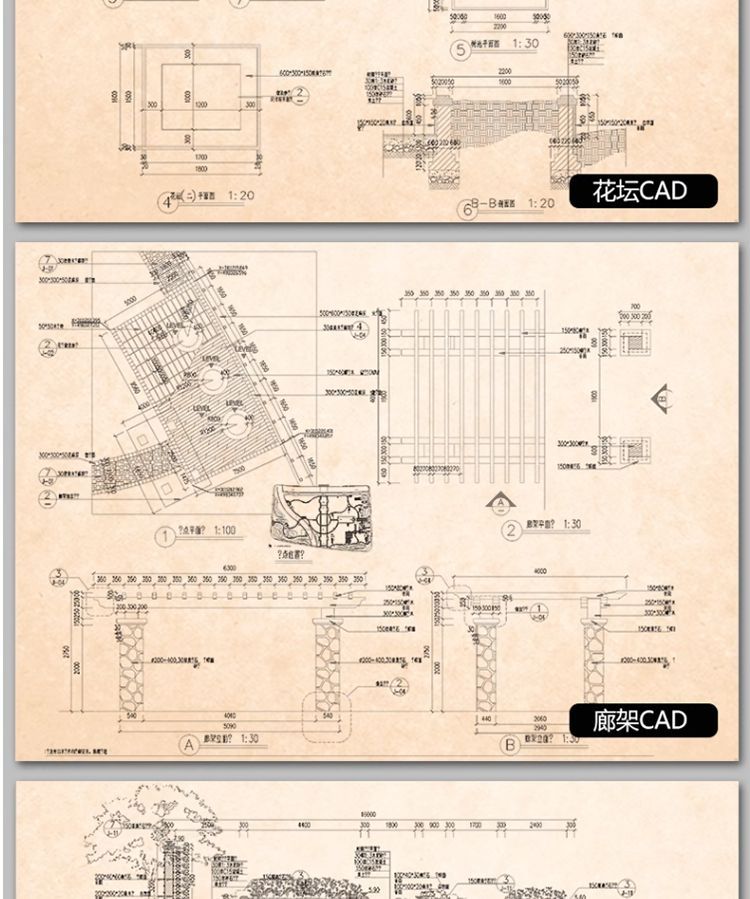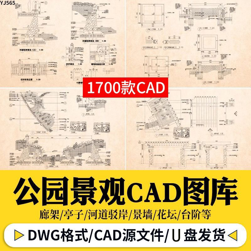 別墅庭院 私家屋頂花園 空中花園 園林景觀設計 CAD設計施工圖(U盤64G)U盤發貨 無需下載 即插即看