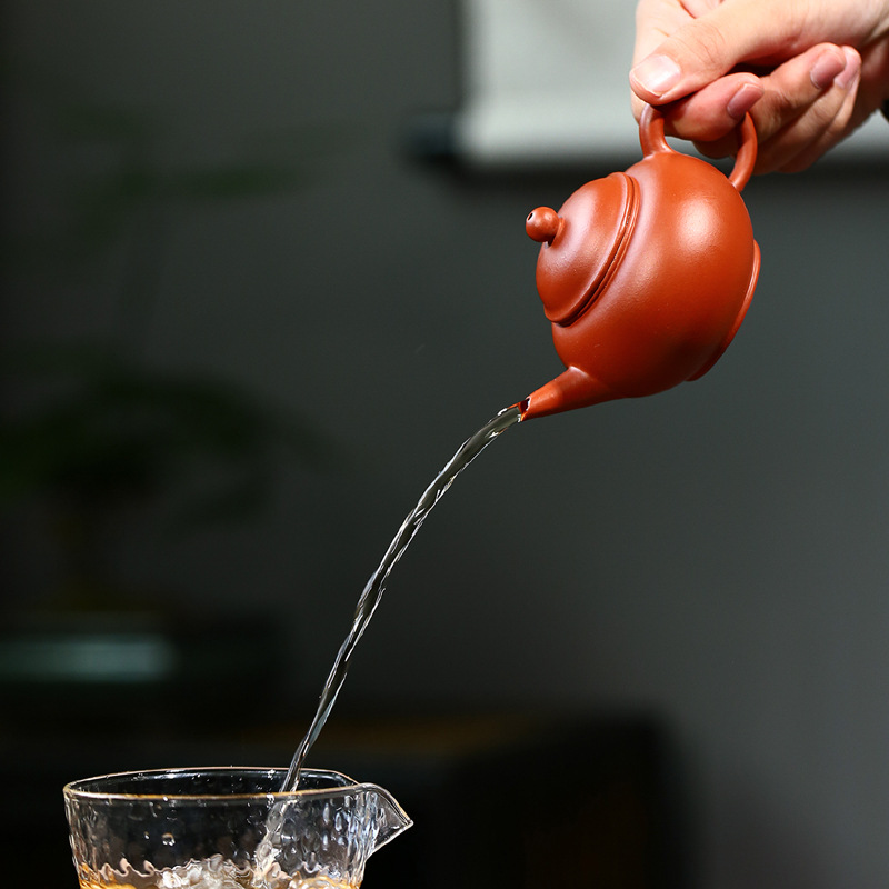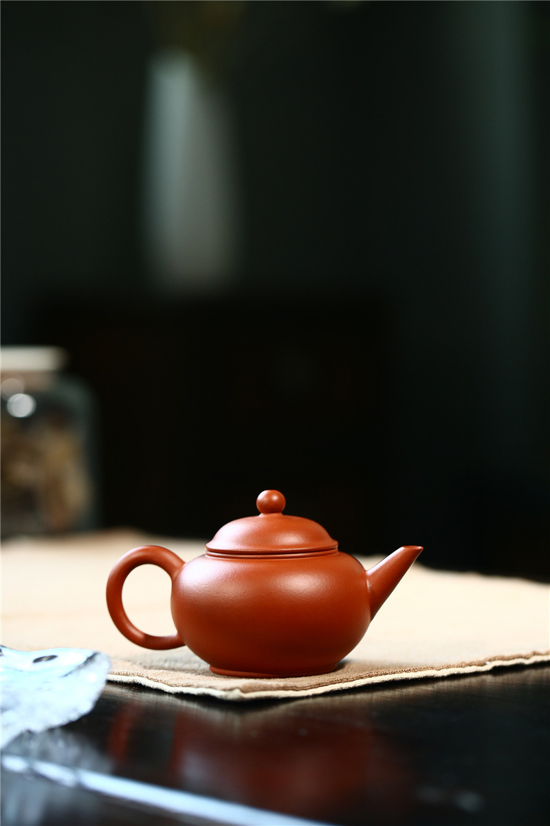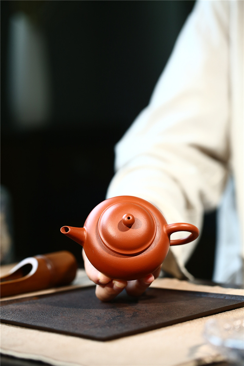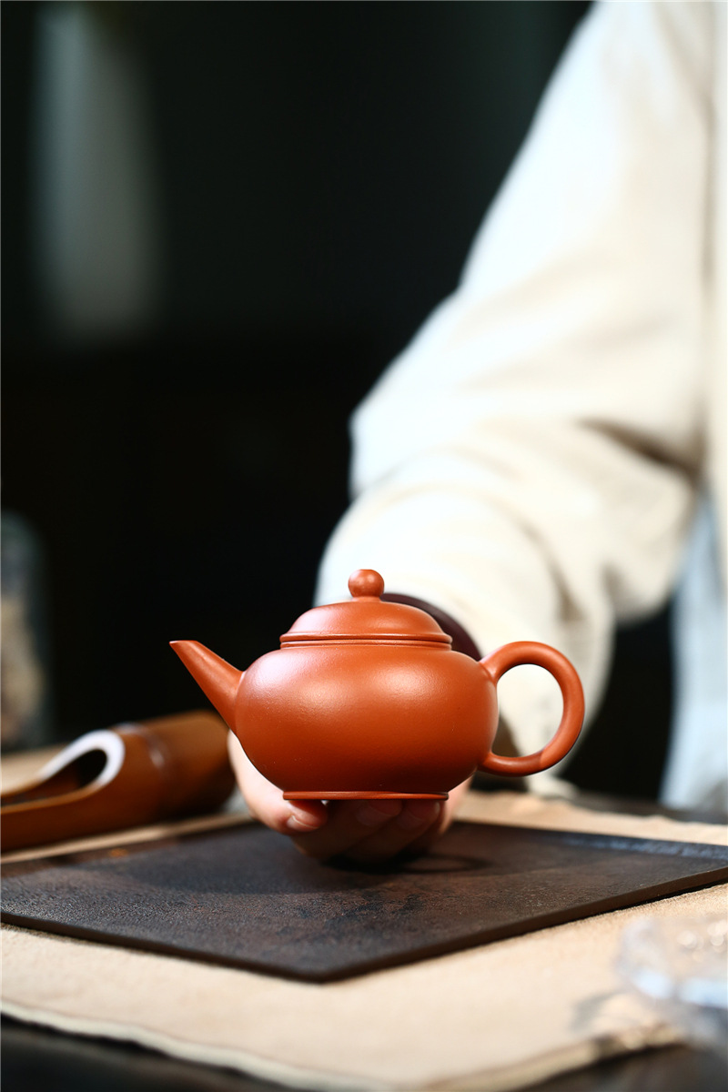 原礦朱泥全手工大紅袍小容量子怡石瓢紫砂壺100cc